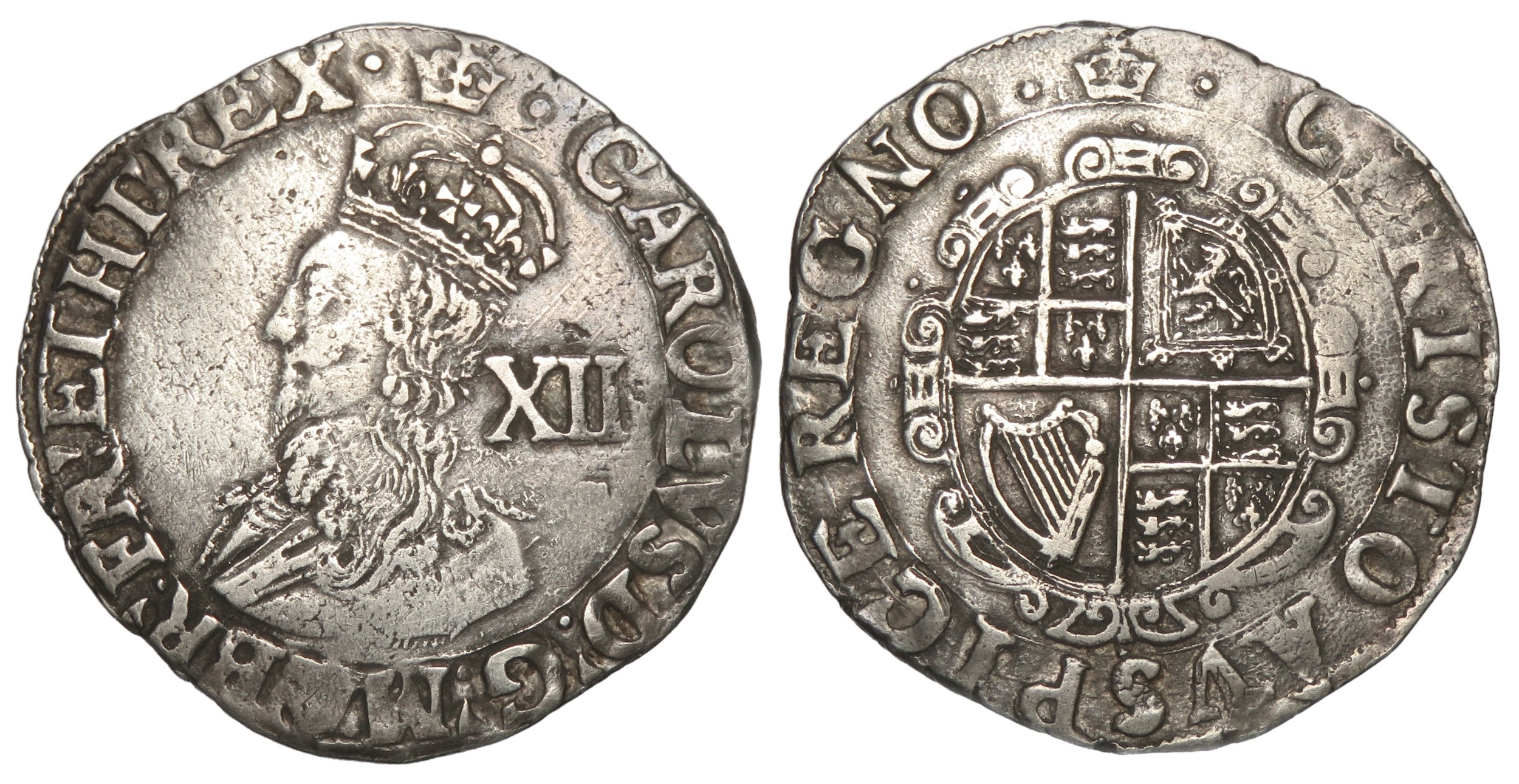 Charles I shilling, 1635-1636. Silver, 5.8g. i.m, crown. Group D, type 3a. Ref: S.2791. British museum coin number, 740. From the "Battle of Aylesbury" hoard. Ref: 2023 T349. PAS: BUC-D73196.