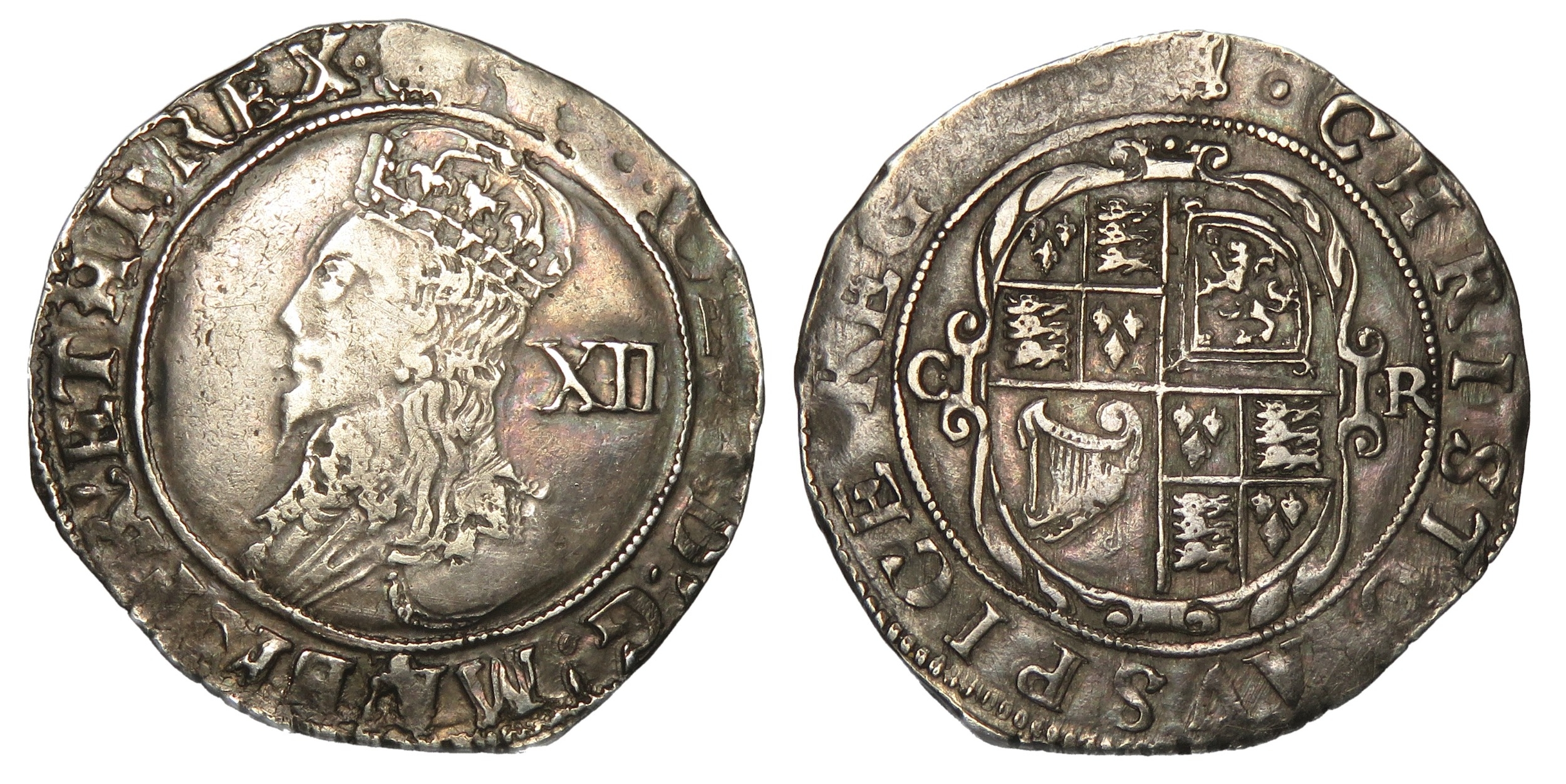 Charles I shilling, 1632-1633. Silver, 6.1g. i.m, portcullis. Group D, fourth bust, type 3.1. Ref: S.2789. British museum coin number, 684. From the "Battle of Aylesbury" hoard. Ref: 2023 T349. PAS: BUC-D73196.