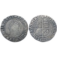 Elizabeth I shilling, sixth issue 1582-1600 AD. i.m, key. Silver, 5.96g. Ref: S.2577. British Museum coin number, 451. From the "Battle of Aylesbury" hoard. Ref: 2023 T349. PAS: BUC-D73196.