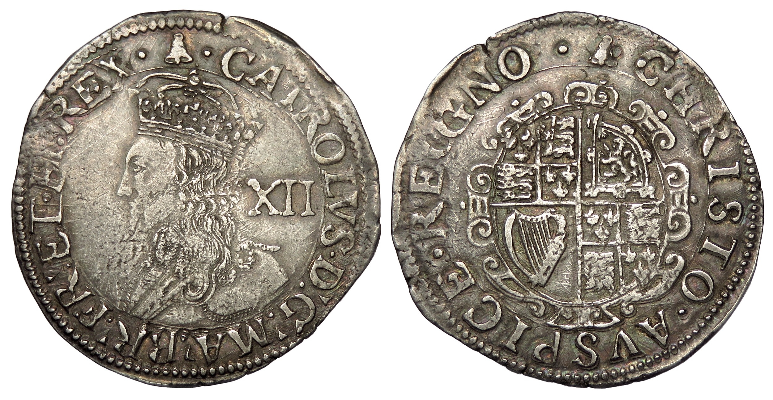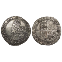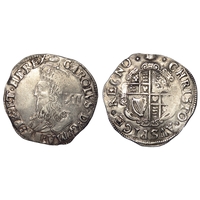 Charles I shilling, 1634-5 AD. i.m, bell. Group D, type 3a. Silver, 5.8g. Ref: S.2791. British Museum coin number, 688. From the "Battle of Aylesbury" hoard. Ref: 2023 T349. PAS: BUC-D73196.
